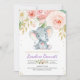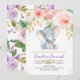 Invitation Baby shower floral d'éléphant violet