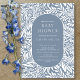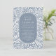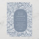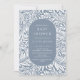 Motif moderne feuille et fleur avec un ovale élégant encadrant vos informations de fête en bleu et blanc en poudre.
