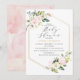 Un design élégant pour une maman à la fois élégante et féminine. Le design se compose d'un cadre géométrique en faux or avec aquarelle rose et blanc floral avec eucalyptus et autres cadres verdoyants les informations du baby shower, une élégante typographie de script de calligraphie fait ressortir le "Baby shower". Cette invitation baby shower est idéale pour une douche de printemps ou d'été. Personnalisez-vous en utilisant les champs de modèle fournis. Si vous avez besoin d'aide, veuillez nous contacter en utilisant le bouton ci-dessous.