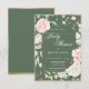 Arrière - plan vert avec fausse invitation dorée. Fleurs délicates rousses, roses et crème. Parfait pour bébé garçon ou fille. Si chic et sophistiqué. Belles éclaboussures de parties scintillant en faux or. J’ai aimé créer ce design pour vous. Zazzle garantit 100% service client et satisfaction. Félicitations pour votre nouveau bébé !