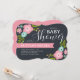 Baby shower d'invitation à la typographie en damier douce et tendance avec une jolie bordure florale illustrée moderne. Utilisez les outils de conception pour modifier les polices et les couleurs de façon à correspondre à votre style unique.