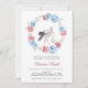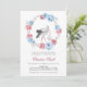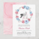 Invitation Baby Shower Floral Rose Blush Et Bleu Hiver. La cigogne est entourée d'une couronne de pivoines aquarelles. Articles assortis disponibles.