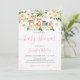 Cette invitation présente de mignons animaux boisés aux fleurs roses rousses et aux accents de feuilles d'or faux.