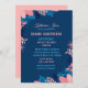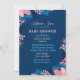 Elégante Invitation Baby shower Floral Rose Marine. Cette élégante invitation est entourée de jolies fleurs roses aux accents bleus. Ajoutez les détails de votre fête pour voir à quoi ressemblera votre invitation avant d'acheter. Notre modèle facilite la modification du libellé de votre baby shower.