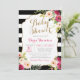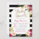 Invitation à rayures chic ornée de belles fleurs d'aquarelle et texte de parties scintillant d'or pour un baby shower pour une petite fille, un garçon, jumeaux ou multiples ou une occasion neutre genre si le genre est inconnu. Customisez le texte à toute occasion.