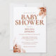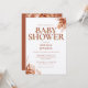 Une invitation élégante pour une baby shower sur le thème de l'automne, avec une typographie élégante en terracotta et un feuillage floral rustique. Conçue par Thisisnotme