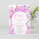 Préparez-vous à fleurir à votre baby shower avec notre invitation à écrire un script d'aquarelle florale peint à la main, brillante, audacieuse et belle ! Parfait pour la future maman qui veut ajouter une pop de couleur et d'élégance à sa journée spéciale. Doté d'une aquarelle fleurie, d'une arche géométrique et d'un script de brosse moderne, il est assez rose vif et violet. Parfait pour la fête d'été dans le jardin.