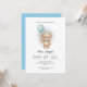 Invitation Baby Shower for Boy Blue Balloon, Teddy Bear & Bow