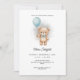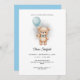 Invitation Baby Shower for Boy Blue Balloon, Teddy Bear & Bow