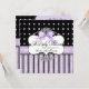 Cette Invitation Baby shower présente d'élégants tourbillons français en cuivre, des points lavande et taupe dans l'arrière - plan, un ruban feuilleté et un bel arc lavendar peint à la main. Le tout réalisé à partir d'oeuvres originales d'Audrey Jeanne Roberts. Le résultat est un ensemble Baby joliment contemporain. A l'envers, il y a le même motif à points et un crochet qui révèle une place pour la photo de votre bébé. Vous pouvez facilement ajouter votre propre image ou changer le message. VOUS POURREZ ÉGALEMENT PROFITER :