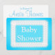 Baby shower Invitation, bleu avec dentelle blanche