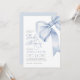Faites de la douche de votre bébé un moment inoubliable avec notre Baby shower Blue Bow Boy! Vous planifiez une fête charmante pour l'arrivée de votre petit ? Ne cherchez plus ! Cet élégant invitation est conçu pour capturer l'essence de coeur de votre journée spéciale. Voici pourquoi c'est le produit parfait pour vous et vos invités : Notre invitation à l'arc bleu combine la teinte rêveuse du bleu bébé avec un design simpliste et sophistiqué, ce qui fait de votre événement un sentiment à la fois minimal et sans effort chic. Le style coquette ajoute une touche de charme ludique, assurant à votre douche se démarque par son élégance simple et classique. Dites adieu à des invitations encombrés et embrassez cette façon élégante de rassembler vos proches et de célébrer votre petit prince. Avec notre invitation baby shower garçon, vous donnerez le ton pour une occasion mémorable remplie de joie et d'anticipation. Préparez-vous à prendre une douche avec votre paquet de joie qui va arriver bientôt avec amour et rire! 💙 ✉️
