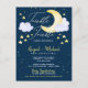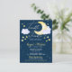 Faire-part de fête prénatale pour bébé garçon, thème "Twinkle Twinkle Little Star", à petit budget (4,25 x 5,6 po) avec des éléments d'aquarelle comprenant une lune adorable flottant sur des nuages d'aquarelle bleu pastel et entourée d'étoiles d'aquarelle jaune. Notre modèle de faire-part de fête prénatale pour bébé garçon est rehaussé de petites étoiles et d'une typographie manuscrite au pinceau sur fond bleu marine. La typographie accentuée de style script est associée à une typographie moderne en lettres capitales. #FêtePrénatale #CestUnGarçon #FairePart #FêtePrénatalePasCher