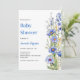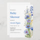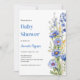Un arrière - plan blanc chic. Décoré d'un fleur sauvage bleu, jaune. Personnalisez et ajoutez le nom de la mère à être et les détails de la fête.