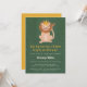 Hip hip hooray un petit roi est en route! Cette invitation baby shower annonce l'arrivée d'un bébé garçon avec un lion doucement illustré portant une couronne sur un arrière - plan textuel de vert jungle.
