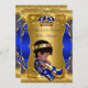 Invitation Baby Shower Garçon Prince Bleu Or Afro-Américain