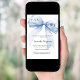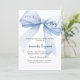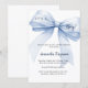Un fond blanc élégant, orné d'un grand ruban bleu. Personnalisez et ajoutez un nom et les détails de la fête.