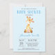 Giraffe Baby shower Invitation Blue et Grey Card. Baby shower garçon ou fille. Pour plus de personnalisation, cliquez sur le bouton "Customiser" et utilisez notre outil de conception pour modifier ce modèle.