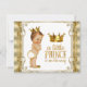 Baby shower Prince invitation avec arrière - plan or et adorable petit prince portant couche or et couronne sur un bel arrière - plan or fantaisie. Cette invitation au baby shower princier doré est facilement customisée pour votre événement en ajoutant les détails de votre événement, le style de police, la taille et la couleur de police et le libellé. Vous pouvez également changer la couleur arrière - plan sur cette adorable invitation au baby shower prince pour correspondre parfaitement à votre thème.