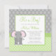 Une invitation mignonne et moderne de baby shower d'éléphant. Comporter le pois et les rayures aux nuances du vert, du gris et du blanc. Perfectionnez pour un baby shower de garçon, de fille ou de neutre de genre.