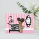 Invitation à une baby shower avec une petite fille afro-américaine vintage en couche à imprimé zèbre, lit, calèche, c'est une fille, rose vif
