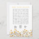 Améliorez vos festivités de baby shower avec notre Carte de jeu de recherche de mots de Baby shower Boho Fleur sauvage Jaune. Cette carte attrayante présente une belle frontière de délicats fleurs sauvages jaunes et blancs, complétant votre événement à thème bohème. Les clients peuvent trouver des mots liés au bébé cachés dans le puzzle, ajoutant un élément ludique et interactif à votre célébration. Ce jeu de recherche de mots ne se contente pas d’offrir des divertissements, mais il s’harmonise parfaitement avec le décor de votre événement, ce qui en fait une activité idéale pour votre journée spéciale.