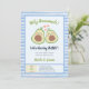 L'Invitation de Baby shower jumeaux neutre Genre du Cute Avocado est une façon amusante et ludique d'invitation vos proches pour célébrer votre arrivée à venir. Doté d'une paire d'avocat mignon avec arrière - plan rayé bleu. Avec beaucoup d'espace pour inclure tous les détails importants, cette invitation est parfaite pour un baby shower thématique espace ou pour toute personne à la recherche d'une invitation unique et mémorable.