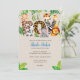Oh mon Dieu ! Allez-vous en pour cette invitation au baby shower à thème animal de la jungle. Un jeu de couleurs bleu, vert et marron est parfait pour ceux qui attendent un bébé.