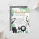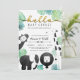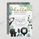 Une invitation à la douche à l'esprit jungle, conçue dans un style moderne et qui conviendra parfaitement aux garçons et aux filles. Avec gorille, singe, girafe et éléphant, avec feuilles tropicaux et flèches de saumon doré. Parfait pour ce petit sauvage !
