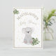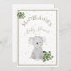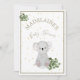 Un Koala mignon avec des feuilles eucalyptus est la base de cette invitation Baby shower. Feuilles verts cette jolie Koala est à l'avant et à l'arrière de cette invitation personnalisée personnelle. Modifiez facilement les informations pour votre propre conception personnalisée.