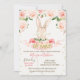 Invitation Baby shower lapin de filles Sweet rose floral et lapin lapin à thème invitation baby shower avec un arrangement floral rose et vert dans la partie supérieure du design et une bannière rose. Ce design est parfait pour le baby shower à thème lapin lapin d'une petite fille.