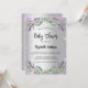 Une invitation baby shower moderne et design. Un arrière - plan faux argenté avec parties scintillant violette, étincelants, fleurs de lavande, fleurs et végétation d'eucalyptus. Personnalisez et ajoutez le nom et les détails du parti.