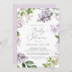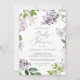 Cette invitation rustique au baby shower lilas est parfaite pour un baby shower de printemps ou d'été. Le design floral romantique et élégant présente des fleurs sauvages lilas violets d'aquarelle aux allures de jardin boho.
