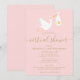 Invitation de baby shower longue distance en ligne rose avec une jolie cigogne rose portant une livraison d'étoile or très spéciale, sur un arrière - plan blanc, ce baby shower mignon, saupoudrer ou couples longue distance, douche par invitation par courrier est parfait pour tous les petits qui sont en chemin. Ajoutez les détails de votre célébration dans un texte élégant pour créer l'invitation parfaite. Conçu par Thisisnotme©