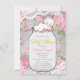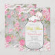 Adorables filles vintage rose mât avec fleurs roses et dentelle invitation baby shower. Cette invitation à baby shower en pot de mason fille douce est facilement customisée pour votre événement en ajoutant vos détails dans le style de police et de couleur, et le libellé de votre choix.