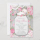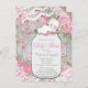 Adorables filles vintage rose mât avec fleurs roses et dentelle invitation baby shower. Cette invitation à baby shower de bocal de mason pour filles douces est facilement customisée pour votre événement en ajoutant vos détails dans le style de police et de couleur, et le libellé de votre choix.