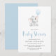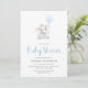 Célébrez votre bébé garçon avec cette invitation minimaliste au baby shower d'éléphant. Doté d'un joli petit éléphant tenant un ballon bleu, ce design est simple, doux et facile à personnaliser.