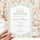 Invitation Baby Shower Mixte avec des Rayures Vert Sauge