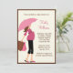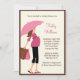 Cette invitation au Baby shower rose et marron présente une jolie silhouette d'une femme enceinte parapluie et attend d'être customisée de vos détails. Cette invitation baby shower moderne et élégante est parfaite pour toute mère. © BabyStar Design