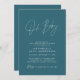 Baby shower script moderne bleu turquoise élégant photo party design d'invitation. Conception idéale sans distinction de genre.
