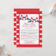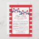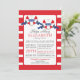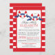 Baby shower nautique moderne rouge, blanc & bleu invitation à la douche pour bébés jumeaux. Notre baby shower contemporain Ships Ahoy jumeaux offre deux coeur rayé rouge et blanc Buoy avec des bannières bleues avec le mot twins sur eux. L'arrière - plan est une bande horizontale rouge et blanche, audacieuse et brillante. Retourne l'invitation pour une bande correspondante. Visitez notre boutique pour voir ceci pour un baby shower pour garçons, un baby shower pour filles et un baby shower neutre pour le genre.