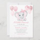 Parties scintillant moderne élégante Cute Elephant Girl Balloons Baby shower Invitation