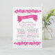 Commencez votre baby shower directement avec notre invitation à baby shower parapluie moderne. Notre élégante et branchée douche d'amour et invitation de voeux de succès comprend une rangée de parapluies rose fuchsia pour un baby shower de filles avec une bannière contemporaine posée sur un arrière - plan blanc immaculé. Retournez l'invitation pour trouver un défilement correspondant pour une touche spéciale supplémentaire.