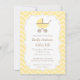 Si vous gardez le sexe du bébé secret jusqu'à la grande journée, choisissez cette invitation moderne et élégante de baby shower neutre pour les sexes qui est dans la palette de couleurs douces jaune et marron pastel. Il dispose d'une poussette jaune avec motif pois et d'une disposition blanche avec des effets de point pour faciliter la personnalisation des détails de la fête. motif de zigzag au chevron jaune pour arrière - plan.