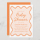 Invitation Baby shower moderne ondulé rétro Peach Fuzz