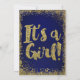 Invitation Baby Shower Moderne Pailleté Bleu Royal et Or