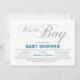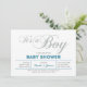 Célébrez une journée spéciale pour votre bien-aimé avec cette invitation baby shower moderne! Ce design présente une typographie stylisée "It's a boy" en parties scintillant texture argentée & turquoise.