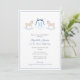 Cette invitation au baby shower d'inspiration nostalgique et familiale présente un cheval à bascule en bois intemporel aux accents bleus et une bordure à double cadre bleu marine élégante. Ces éléments ont été peints à la main par moi dans des aquarelles avant d'être scannés sous forme numérique. L'inversion de l'invitation est un motif grec à clé bleu et blanc foncé. Vous pouvez modifier les couleurs des bordures et du motif de clé grecque à l'intérieur de l'outil de conception.
