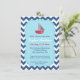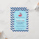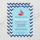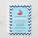 Ahoy ! C'est un garçon ! Invitations amis et famille à naviguer et célébrer l'arrivée de votre petit bébé marin avec cette invitation classe et élégante du baby shower nautique! Il possède un mignon petit voilier avec une voile de motif rayé coloré et une étoile à son bord. Palette de couleurs rouge, blanc, bleu et arrière - plan de chevron bleu et blanc, cette invitation est parfaite pour une soirée nautique à thème pour les bébés garçons ! Personnalisez-vous facilement avec les détails de votre fête.