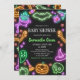 Célébrez Halloween dans un style éclatant avec notre Neon Halloween Baby shower Invitation! Cet invitation de baby shower à thème unique et brillant dans le noir présente des couleurs de néon vives et s'oppose à un arrière - plan sombre, créant une ambiance éffrayante mais ludique. Parfait pour une douche d'Halloween neutre pour les hommes et les femmes, il présente des citrouilles néons, des chauves-souris, des fantômes et des toiles de coiffure, ce qui en fait le choix ultime pour les parents qui veulent une touche moderne dans une célébration éffrayante. BBS495